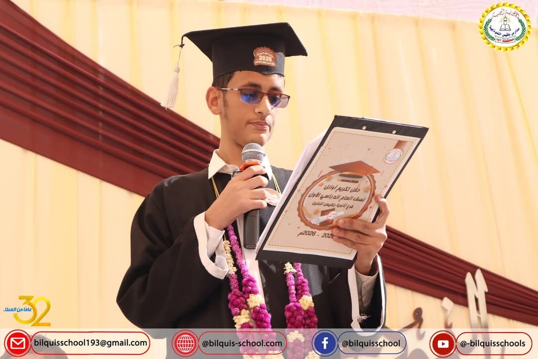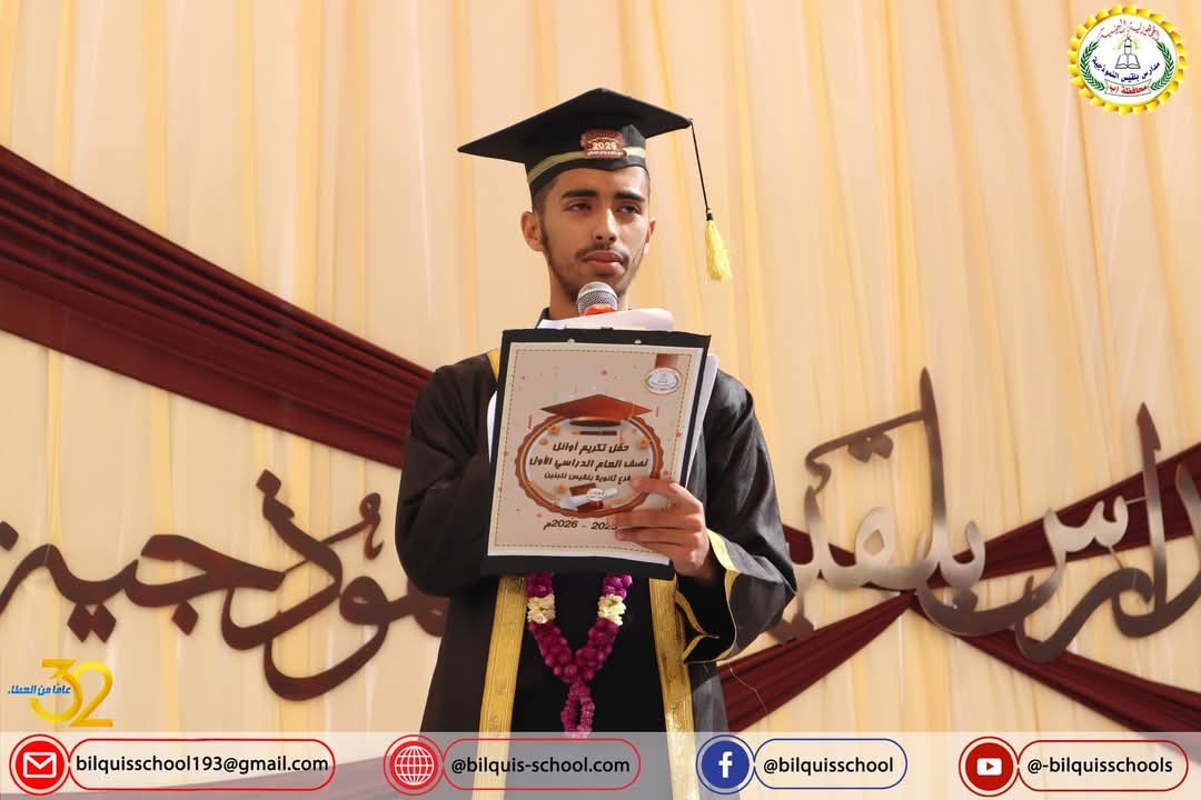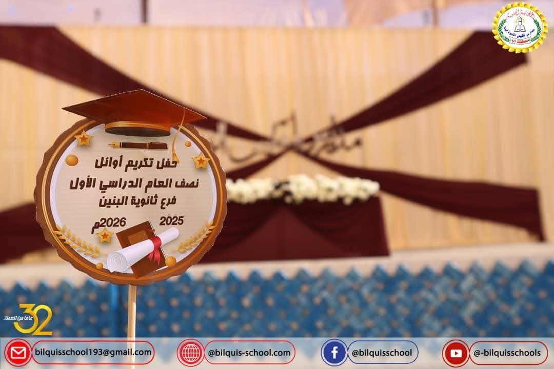 ﺑﺮﻋﺎﻳﺔ ﻛﺮﻳﻤﺔ ﻣﻦ ﻣﺪﺍﺭﺱ ﺑﻠﻘﻴﺲ ﺍﻟﻨﻤﻮﺫﺟﻴﺔ . أﻗﺎم (فرع ثانوية بلقيس للبنين ) الحفل التكريمي الخاص بأوائل الفصل الدراسي الأول للعام 2025-2026م